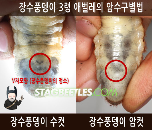 장수풍뎅이 애벌레의 암수구별은 3령 초기가 지나면 할 수 있습니다.